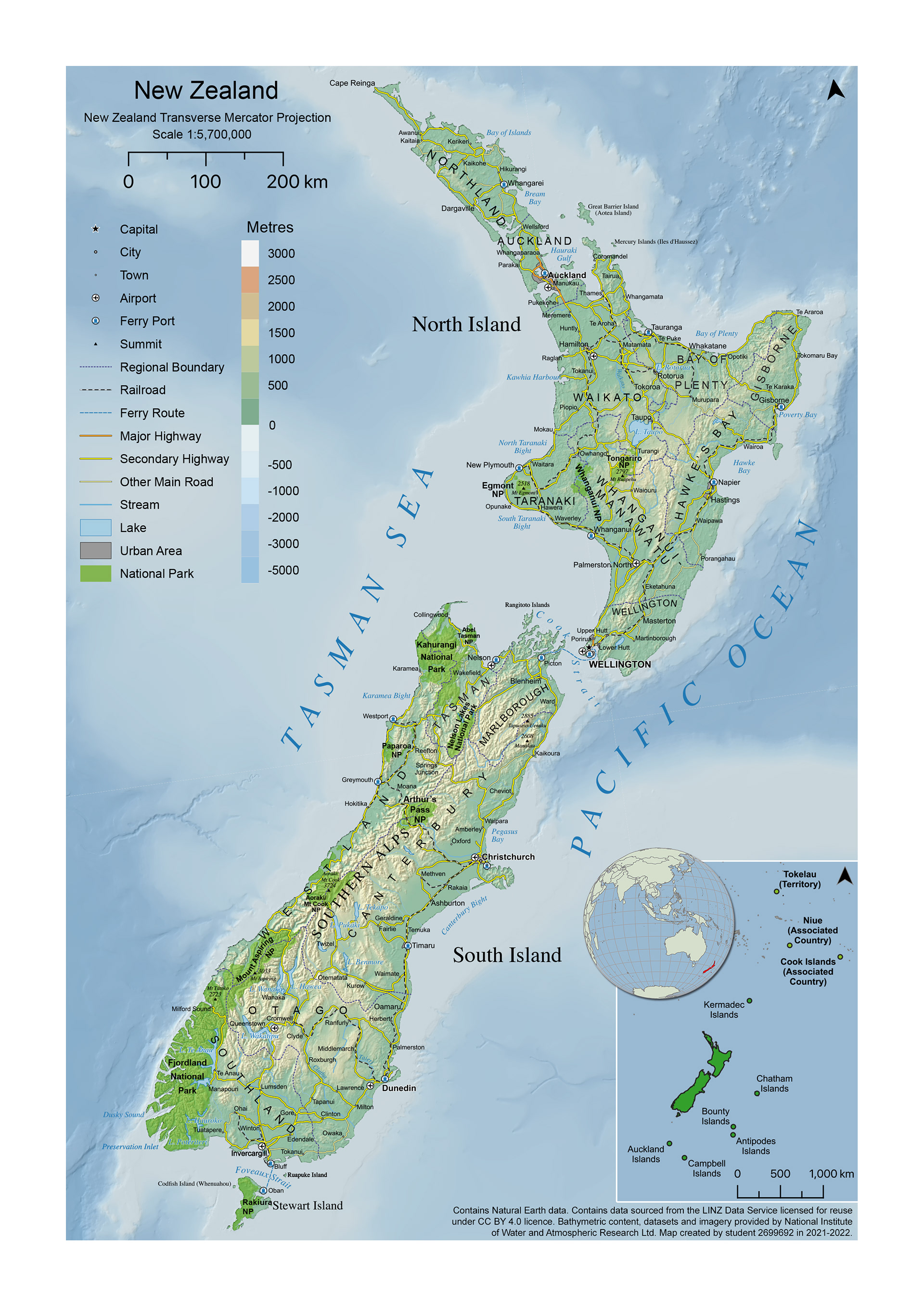 New Zealand A4 briefing map created using QGIS